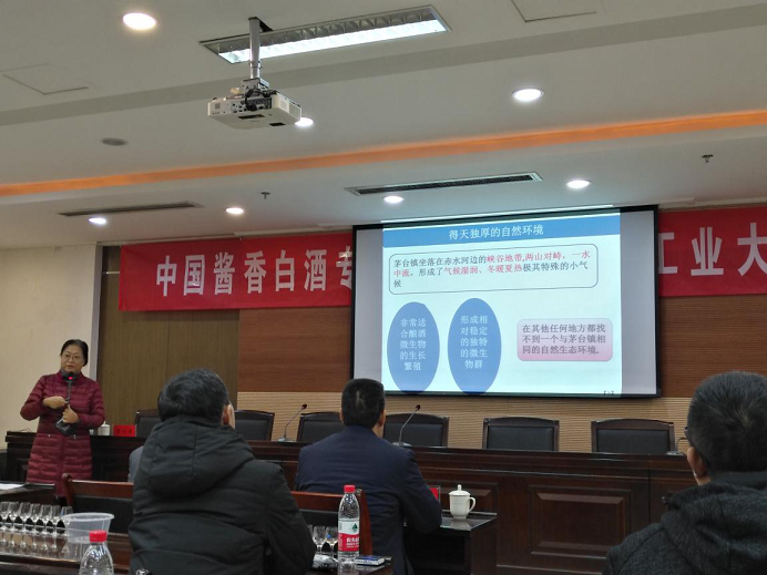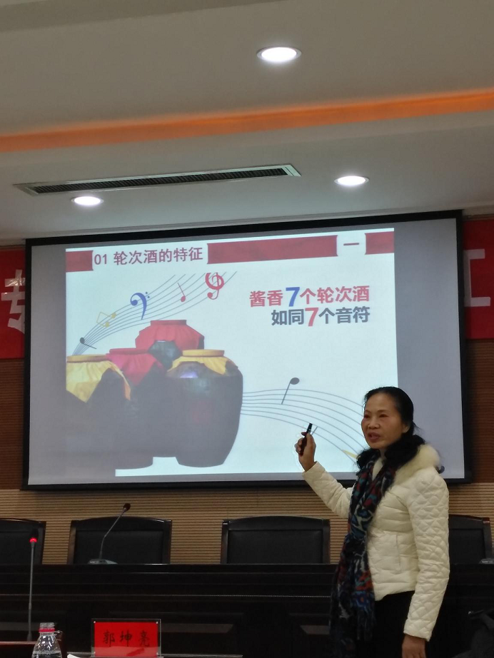 12月16日--17日,中国酱香白酒专家委员会专家郭坤亮总工、彭茵总工、陈兴希主任,赴齐鲁工业大学就行学术交流,举行“国酒茅台 国色酱香”学术讲座。其中,郭总作为白酒首位博士后专家,对酱酒的发展格局做了阐述,使我们更加深入的了解酱酒发展;陈主任为我们作了茅台酒生产工艺的详细阐述,较深入的对茅台酒产地环境、生产工艺、储存等进行了研究;彭总给我们介绍了酱香酒的品评方法,现场指导我们对茅台七轮次酒进行差异化品评,并用五杯品评法对不同类型的茅台酒进行鉴别,彭总用自己丰富的经验和乐观的人生态度为我们上了一堂生动的品评课。